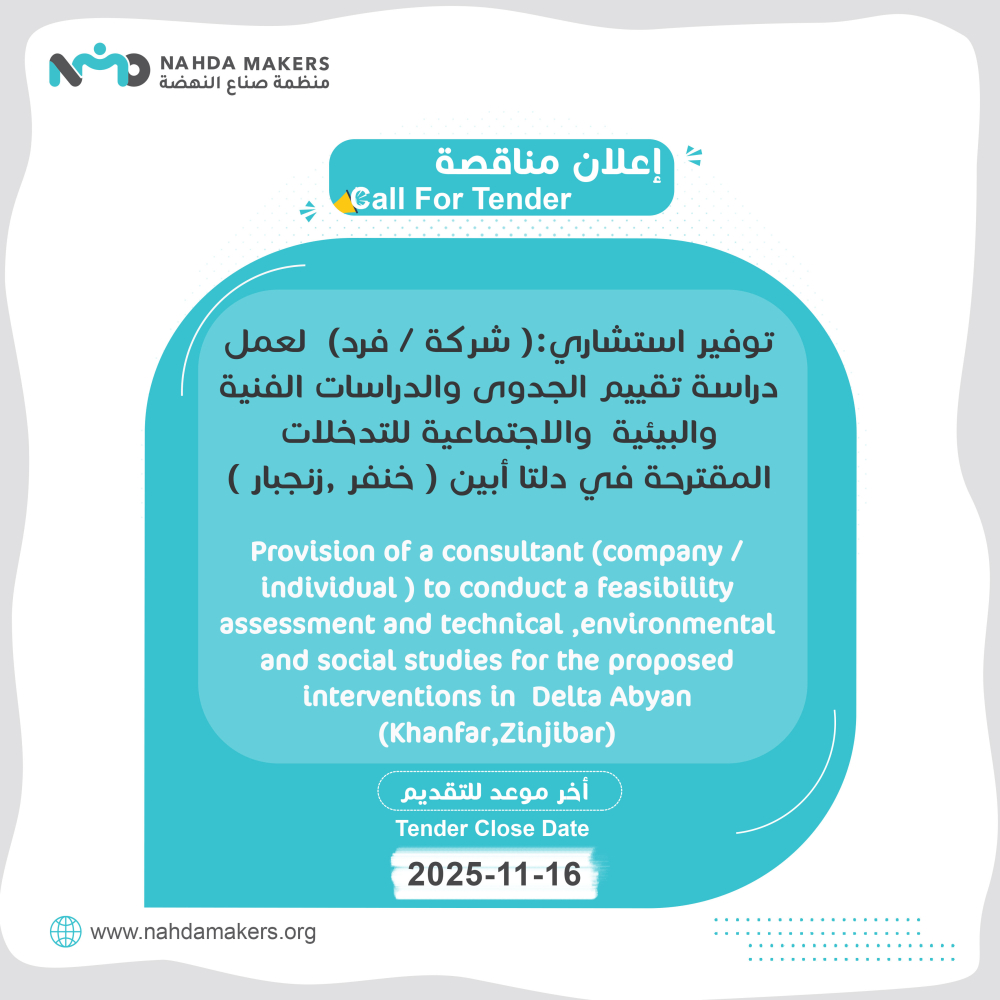 Provision of a consultant (company / individual ) to conduct a feasibility assessment and technical ,environmental and social studies for the proposed interventions in Delta Abyan (Khanfar,Zinjibar)