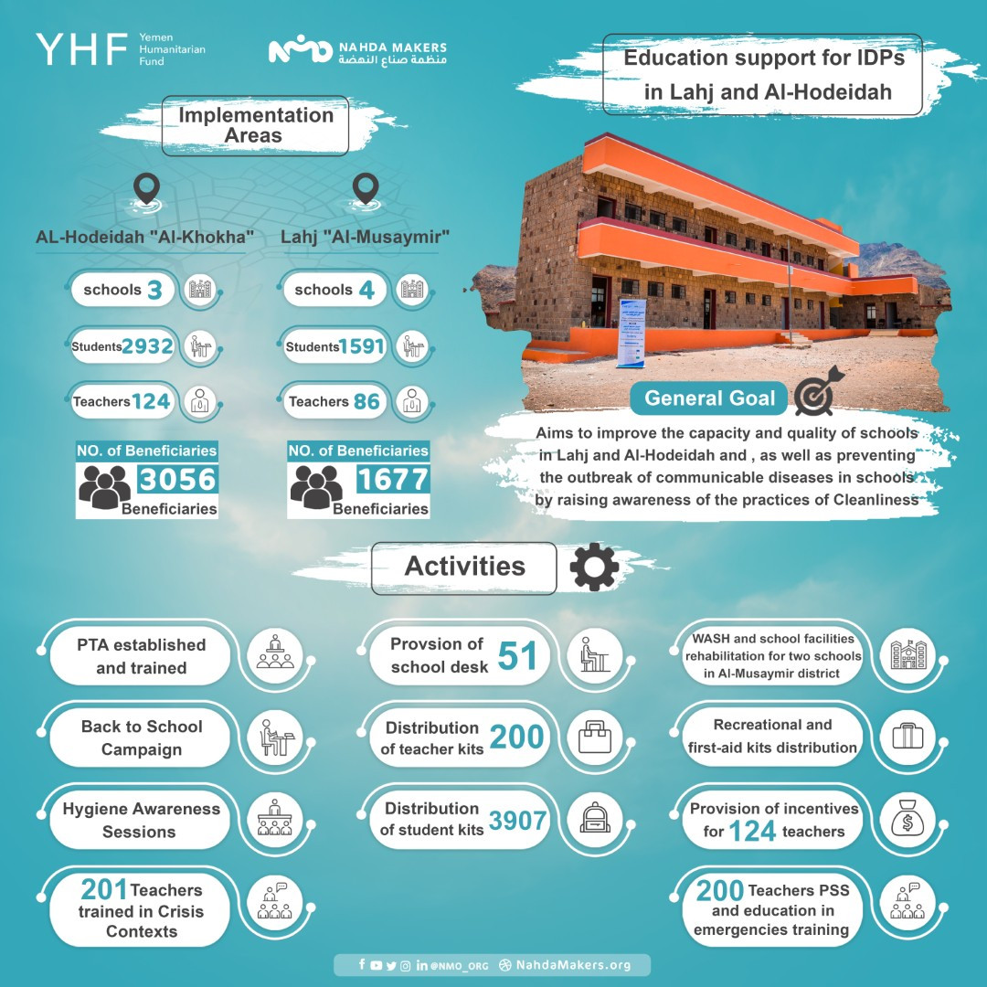 See a summary of what we have done in the Education Support for IDPs in Lahj & Hodeidah project funded by #YHFWhich worked to intervene in 7schools in order to improve the capacity & quality of schools in those areas.