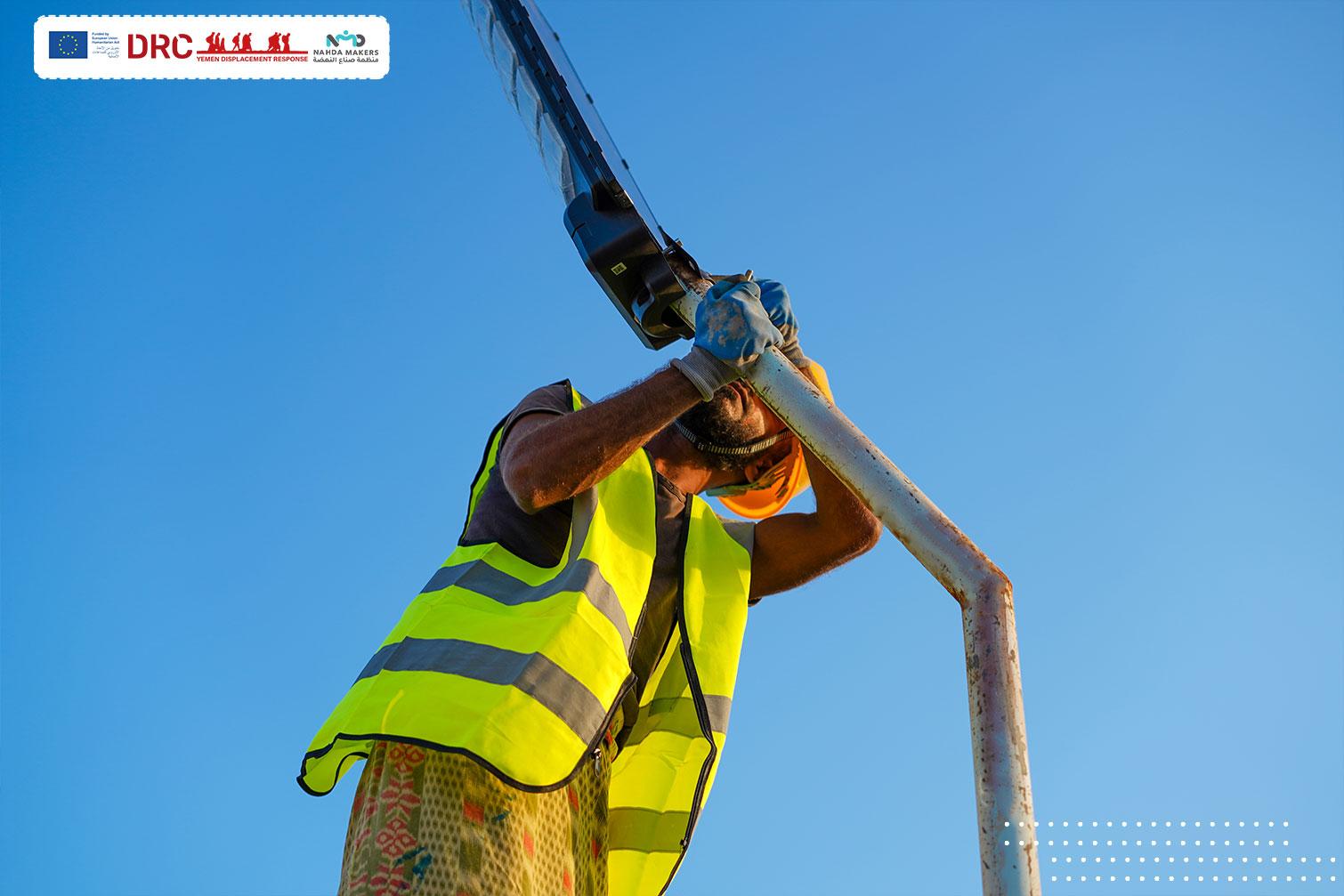 The activity included the installation of 6 solar-powered lighting poles with floodlights, implemented with active participation from the local community as part of a community-based project. In addition, 10 solar-powered lighting units were maintained under the maintenance project activities. This intervention aims to improve public lighting services and enhance their efficiency within the targeted area.