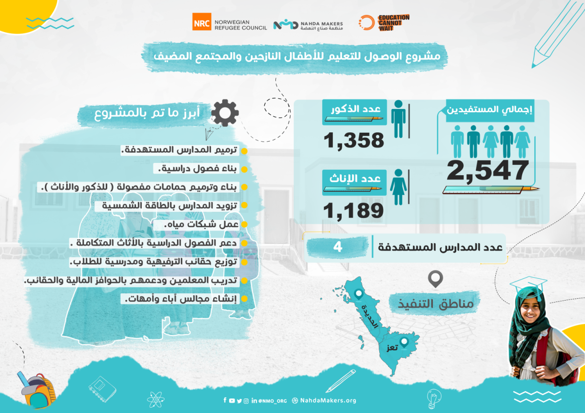شاهد ملخص ما قمنا به في مشروع "دعم التعليم للنازحين في لحج والحديدة" بتمويل من #YHF والذي عمل على التدخل في 7 مدارس وعلى أن يستفيد منه 3056 فرد في الحديدة و 1677 فرد في لحج وذلك لتحسين قدرة وجودة المدارس في تلك المناطق